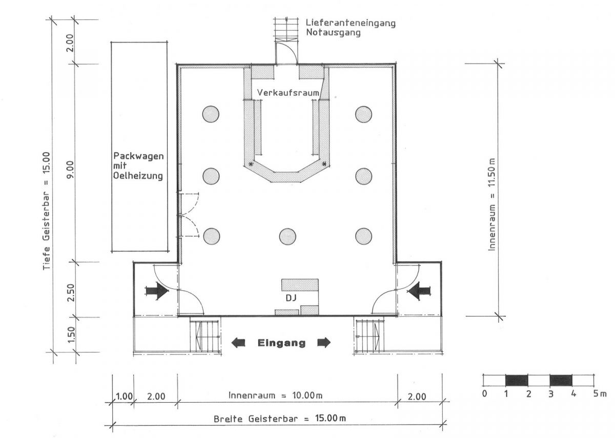 Die Geisterbar verfügt über eine Nutzfläche von 115m2.